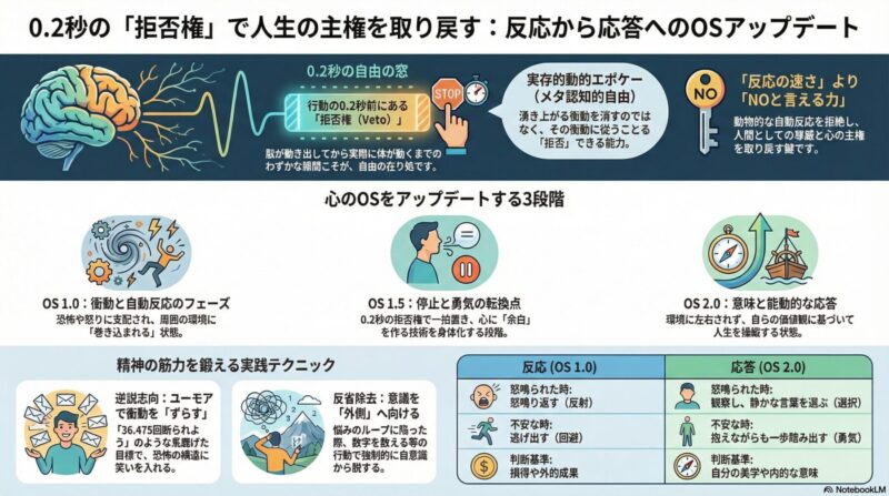 それら自体を消すことはできなくても、この0.2秒という窓の中で、その衝動に従うことを「拒否」し、人間的な応答を選び直すことができます。