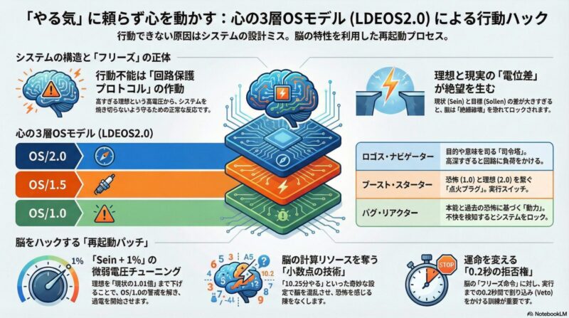 本マニュアルでは、精神のフリーズを回避し、即座に再起動をかけるための「LDE(ロゴダイナミック実存主義)」に基づいた、LDEOS2.0モデルを提示します。