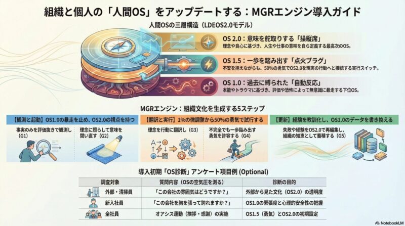 理念を単なる壁飾りに終わらせず、組織の血肉へと浸透させるシステムが「MGRエンジン(意味の共同生成プロセス)」である。