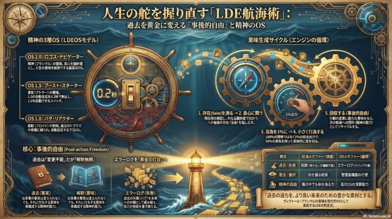 本レポートでは、ロゴダイナミック実存主義(LDE)の視点から、私たちが再び「船長」として人生の舵を握り、過去という名の「航跡」さえも未来の資材(黄金)へと変えていくための航海術を伝授します。