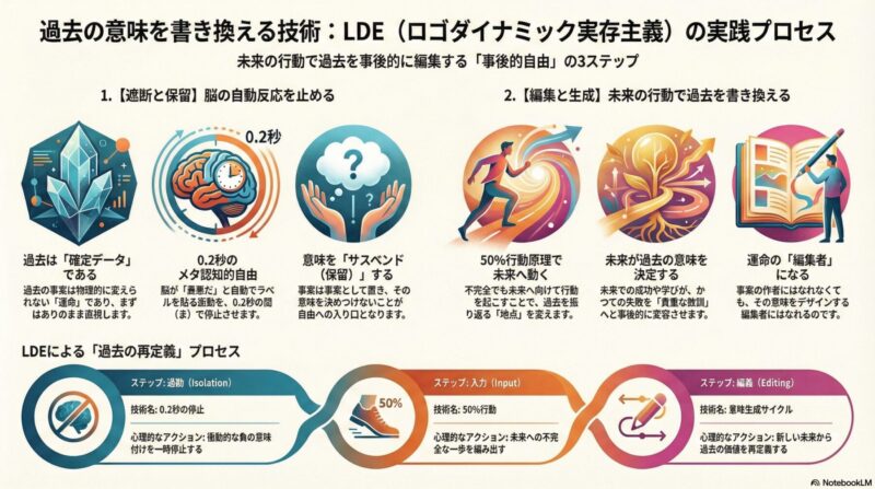 だからこそ、LDE(ロゴダイナミック実存主義)が存在します。 LDEは、この「事後的自由」を単なる哲学的な理想論として終わらせず、「現実に使える自由」にするための実践技術として体系化しました。