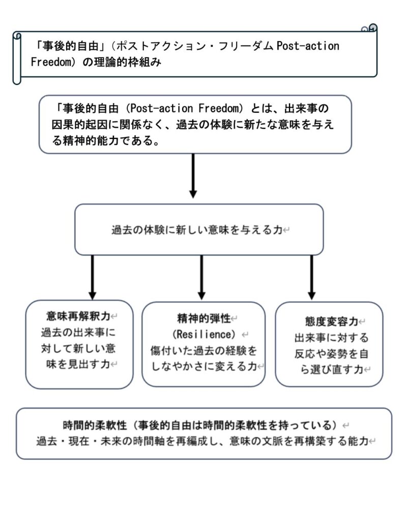 事後的自由(Post‑action Freedom)とは、「出来事の因果的起点に関係なく、過去の体験に新たな意味を与える精神的能力」である。